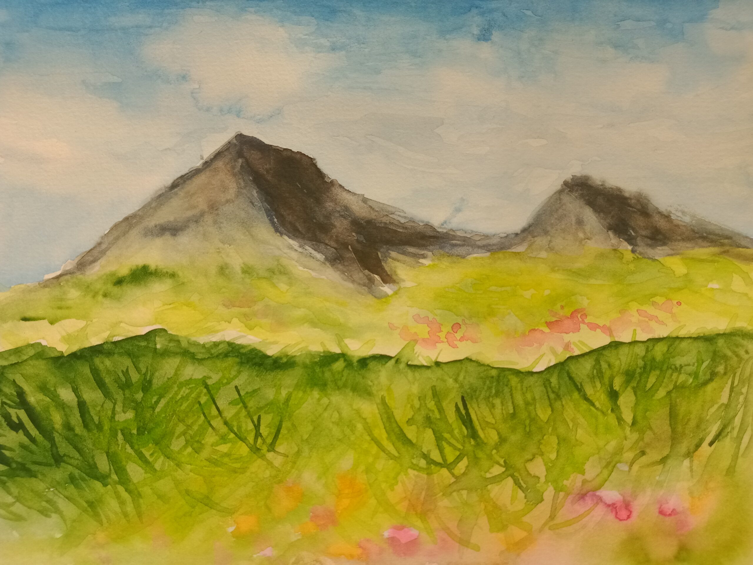 Katharina (10b in 24/25) hat in ihrem Landschaftsbild eine Hommage an den Impressionismus geschaffen, in der die Grundsätze dieser Epoche mit den spezifischen Möglichkeiten der Aquarelltechnik verbunden werden. Das Bild basiert auf einer fotografischen Studie, die nicht als Kopiervorlage dient, sondern dazu, einen flüchtigen Augenblick und die spezifische Lichtstimmung zu einem bestimmten Zeitpunkt festzuhalten – eine moderne Methode, dem impressionistischen Streben nach der Fixierung des Moments gerecht zu werden.
