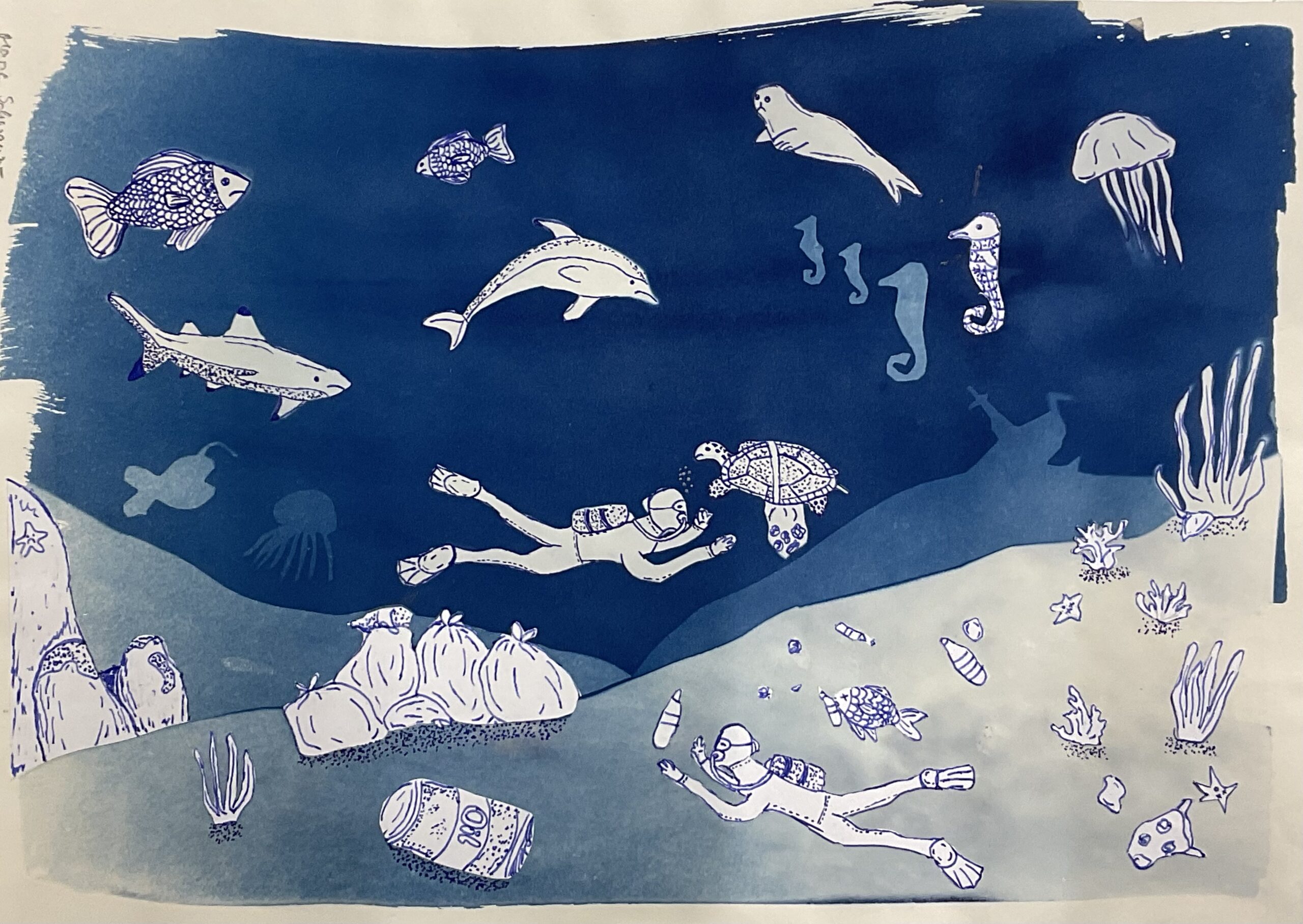 Kunstwerk des Monats: Unterwasserwelten mittels Cyanotypie