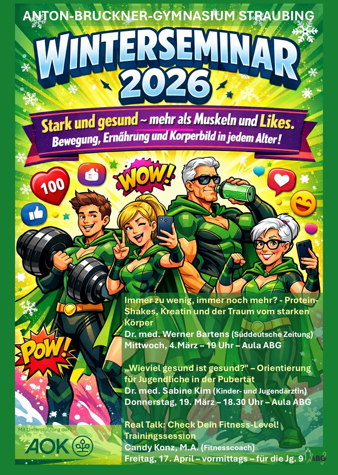 Der Eintritt zu diesen öffentlichen Vorträgen ist – auch mit Unterstützung der AOK – frei!