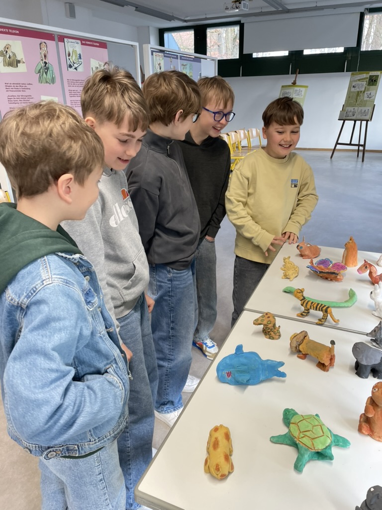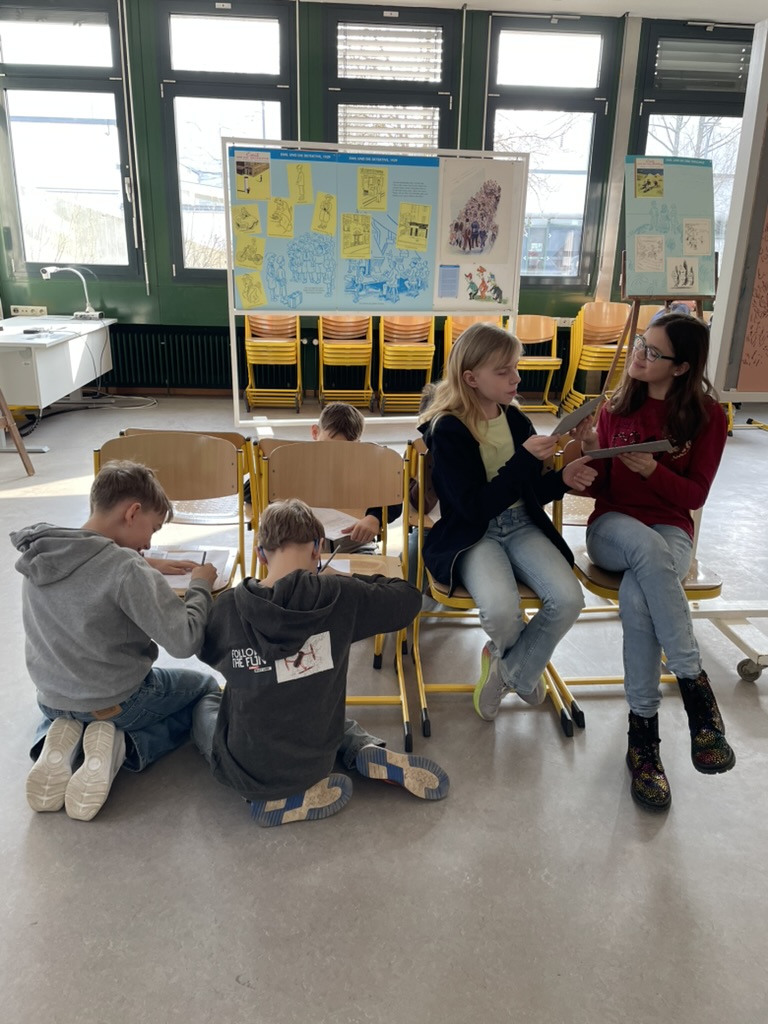 Die Schülerinnen und Schüler der Unterstufe (auf den Bildern die 5b) haben sich im Rahmen des Deutsch- und Kunstunterrichts mit dem Schriftsteller Erich Kästner und seinem langjährigen Illustrator Walter Trier auseinandergesetzt — und dabei den Weg von der Textlektüre bis zum eigenen zeichnerischen Versuch zurückgelegt. Dass viele Kinder mit Kästners Werk bereits gut vertraut waren, gab der Unterrichtseinheit von Beginn an eine besondere Dynamik.
