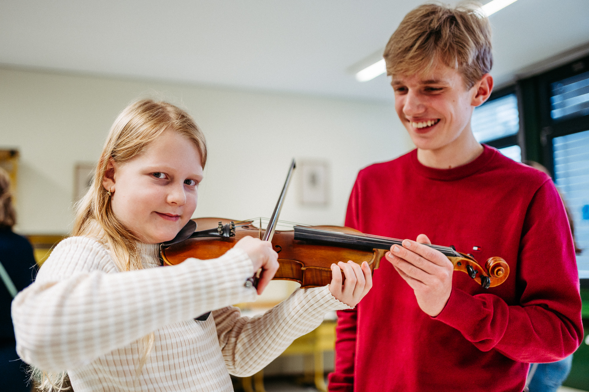 Denn: Die meisten Kinder lernen in der 5. Klasse ihr Instrument ohne Vorkenntnisse. Spaß an Musik ist die einzige Voraussetzung fürs Musische Gymnasium.