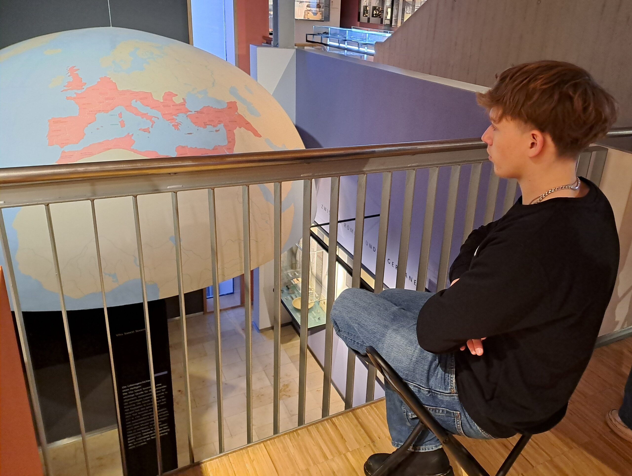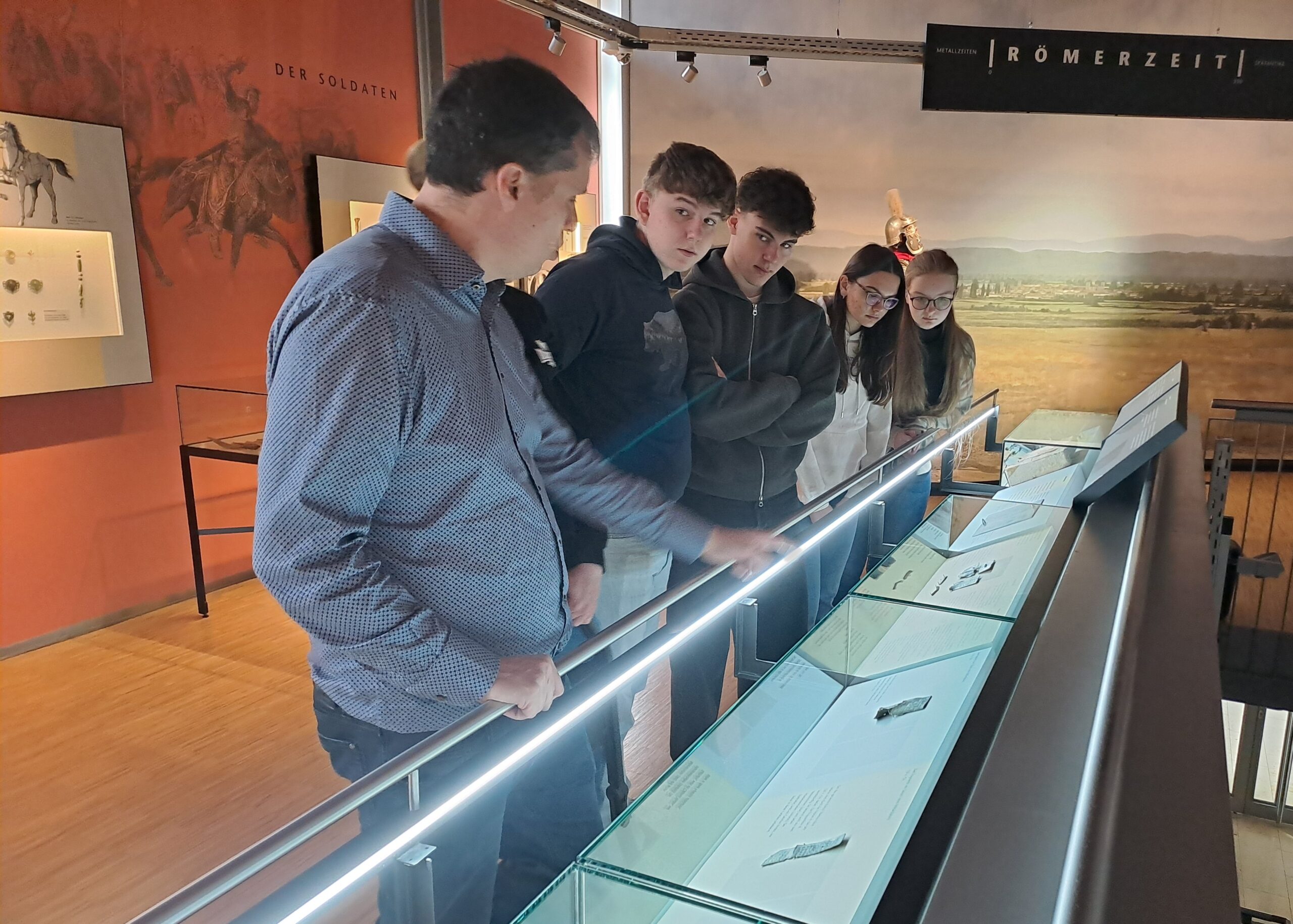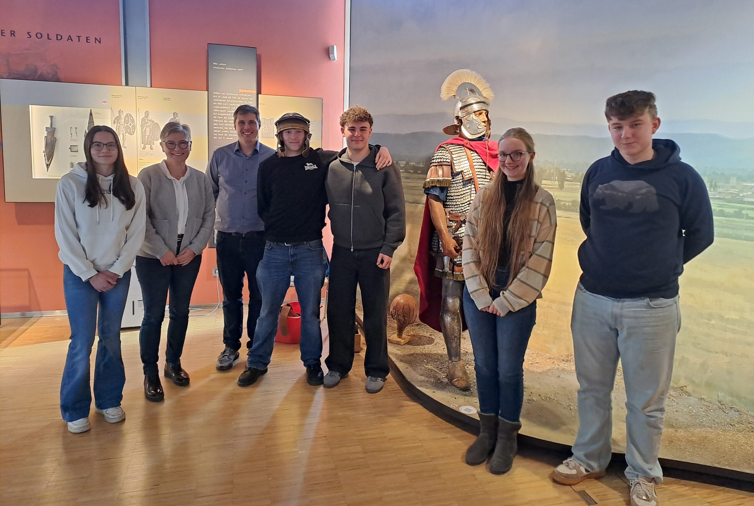 Die Arbeit des P-Seminars „Quintana Quest“ wurde am Donnerstag vor den Weihnachtsferien durch eine Recherche-Exkursion bereichert. Die Schülerinnen und Schüler der 11. Jahrgangsstufe besuchten dazu den Projektpartner, das Museum Quintana in Künzing. Der Museumsleiter Dr. Roman Weindl nahm sich persönlich einen ganzen Vormittag Zeit und führte die Teilnehmer durch die Ausstellung, die direkt an den Donaulimes und das römische Kastell Künzing anschließt. Die Schüler konnten dabei die Originale der Funde sehen, die in der Visual Novel „Quintana Quest“ digital verarbeitet sind: von den erhaltenen Militärdiplomen über Waffen und Schmuck bis hin zum Mithräum. Nach der Führung stand das gemeinsame Projekt im Mittelpunkt. Das P-Seminar und Dr. Weindl nutzten die Gelegenheit, um über die Details der KI-gestützten Übersetzung von „Quintana Quest“ ins Lateinische zu „fachsimpeln“ und die nächsten Schritte zu planen. Dabei entstanden wichtige neue Impulse: Die heute gewonnenen Erkenntnisse über den Alltag in der Provinz sollen in die Projektarbeit integriert werden, darunter Latein als Alltagssprache, wobei die in Funden belegten Grammatikfehler bei den „Provinzialrömern“ eine besonders spannende Perspektive eröffnen. Es war ein äußerst gelungener Vormittag, der einen wichtigen Schritt für das „Quintana Quest“-Projekt darstellt.