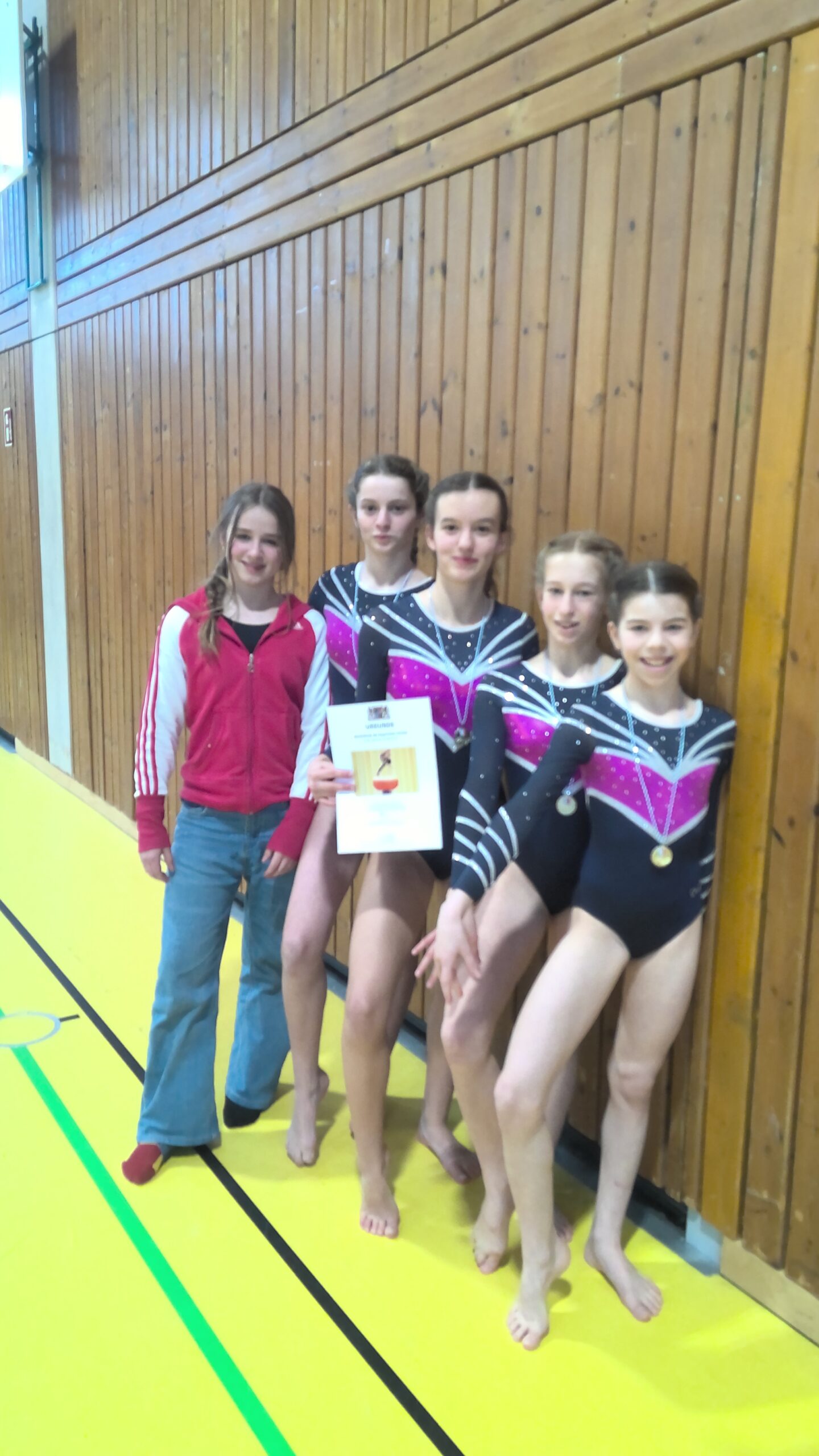 Die Turnerinnen stellten ihr Können an den klassischen vier Geräten unter Beweis, Schwebebalken, Boden, Sprung und Barren und steigerten sich im Wettkampf kontinuierlich, so dass am Ende ein großartiger Erfolg steht: Für eine erstmalige Teilnahme am Bezirksfinale ist der zweite Platz ein starkes Ergebnis. Wir gratulieren!