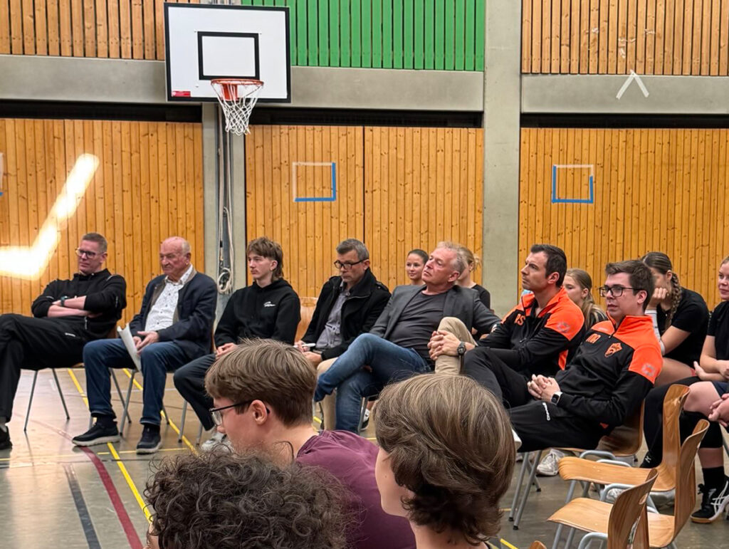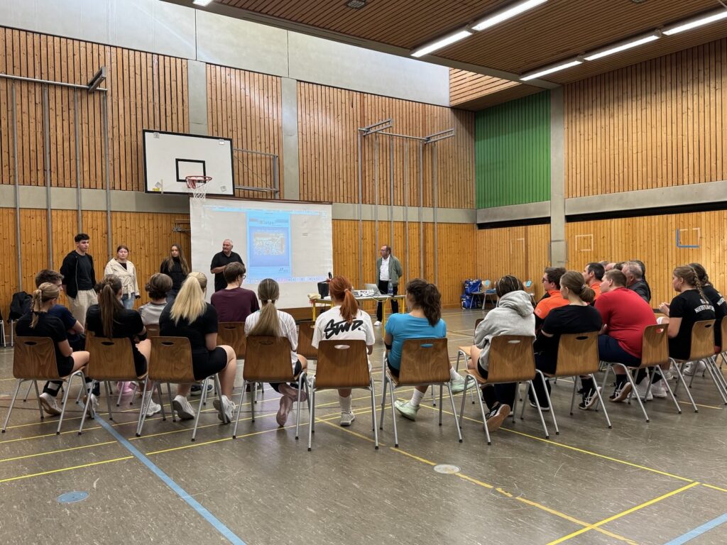 Den feierlichen Abschluss bildete die Zertifikatsübergabe durch Achim Engelking, Referatsleiter für Sport-nach-1 an der Landesstelle für den Schulsport im Bayerischen Landesamt für Schule. Engelking, der bereits 2021 bei der ersten Mentoren-Ausbildung am ABG dabei war, würdigte das Engagement der jungen Coaches mit anerkennenden Worten und überreichte neben den offiziellen Zertifikaten auch die begehrten „Mentor Sport-nach-1“-T-Shirts.