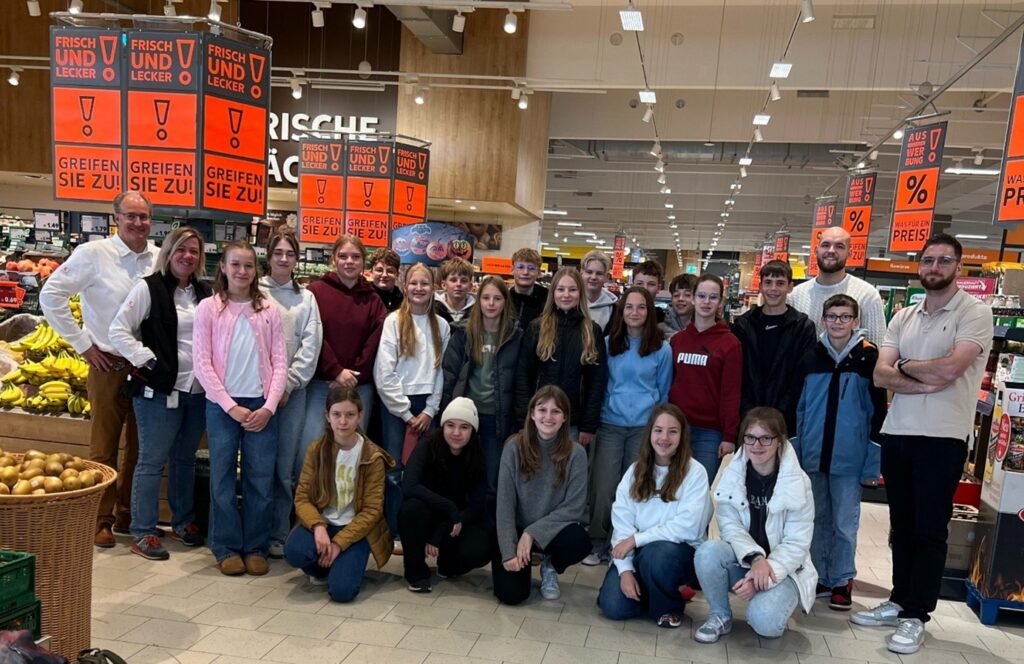Zusätzlich erhielten die Schülerinnen und Schüler eine interessante Vorstellung des Unternehmens Kaufland. Der Filialleiter erläuterte verschiedene Strategien, die das Unternehmen verfolgt, um sich im Wettbewerbsumfeld zu behaupten und die Kundschaft zu gewinnen.