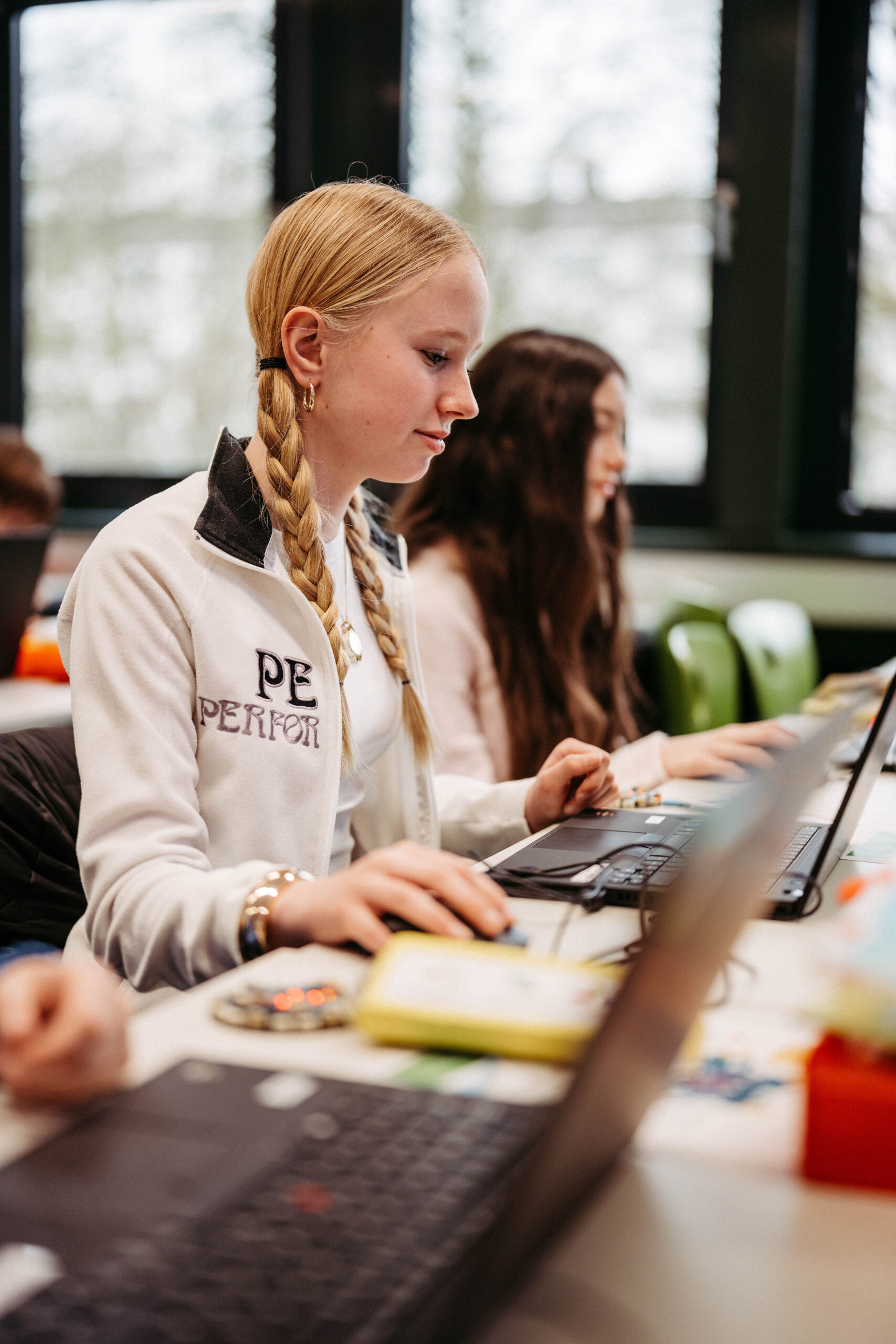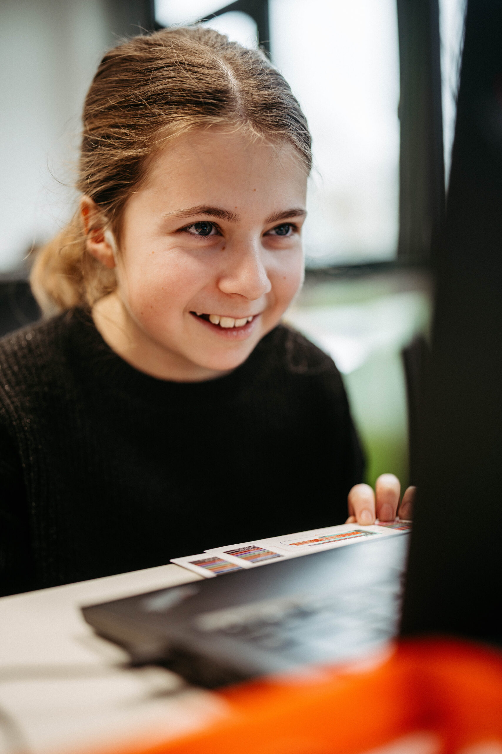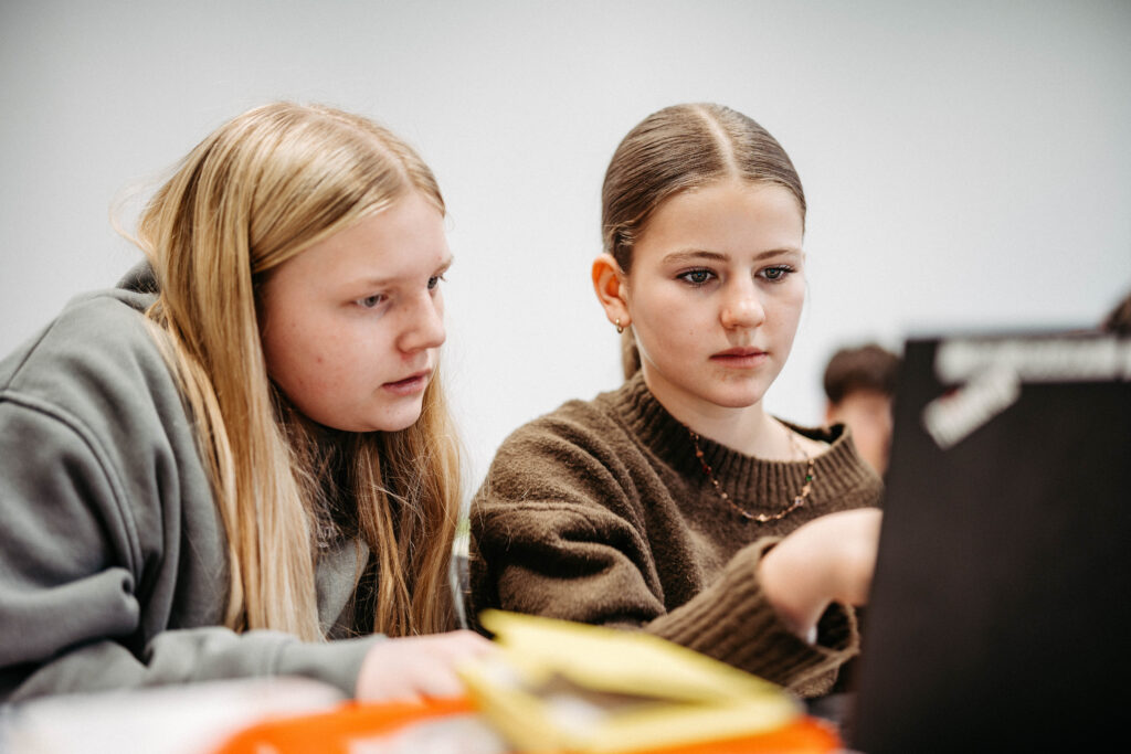 Anschließend programmierten die Schülerinnen und Schüler selbst: Der Calliope mini zeigte Begrüßungen wie „Servus” oder „Wie geht’s Dir?” – und wer Lust hatte, hinterlegte eigene Tonfolgen. Dabei zeigte sich, wie der LehrplanPLUS Natur und Technik es für die Jahrgangsstufe 7 vorsieht, dass algorithmisches Denken unmittelbar in praktisches Tun überführt werden kann: Der Lehrplan verlangt von den Schülerinnen und Schülern, einfache Algorithmen mithilfe geeigneter Programmierwerkzeuge umzusetzen und dabei grundlegende Strukturelemente wie Anweisungen, Sequenzen und Bedingungen zu nutzen – genau das, was der Workshop im Kleinen, aber wirkungsvoll einübte. Auch der im Lehrplan explizit genannte Bereich des Physical Computing – also die Verbindung von Programmierung und realer Hardware – fand hier eine lebendige Entsprechung.