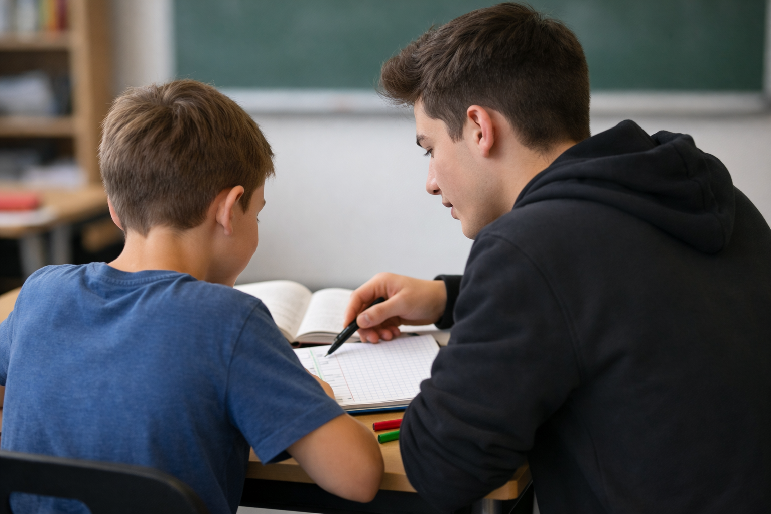 Unsere Ferienschultutoren – bestehend aus Ehemaligen sowie engagierten Oberstufenschülerinnen und Schülern – stehen in der Ferienschule als fachlich kompetente Unterstützung bereit. Sie helfen dabei, den Stoff nachzubereiten, Wissenslücken zu schließen und geben gezielte Nachhilfe in verschiedenen Fächern. Unter dem Motto „Schülern helfen Schülern“ schaffen sie eine motivierende Lernatmosphäre und begleiten die Teilnehmenden mit Rat und Tat. So wird die Ferienschule zu einer wertvollen Gelegenheit, sich optimal auf einzelne Fächer vorzubereiten.